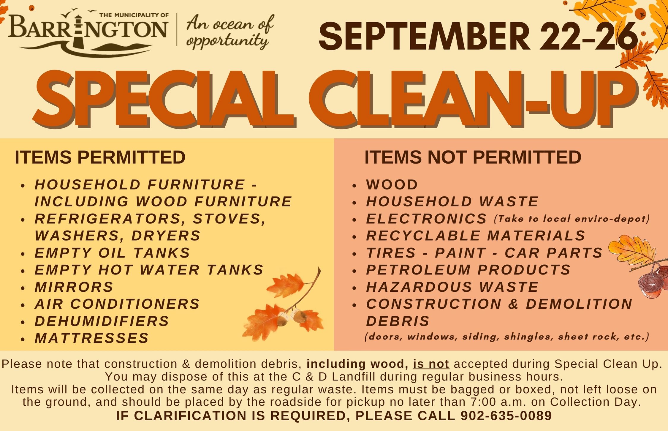 The Municipality of Barrington will be holding its Special Clean-Up the week of September 22–26.